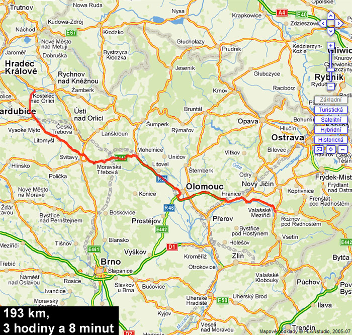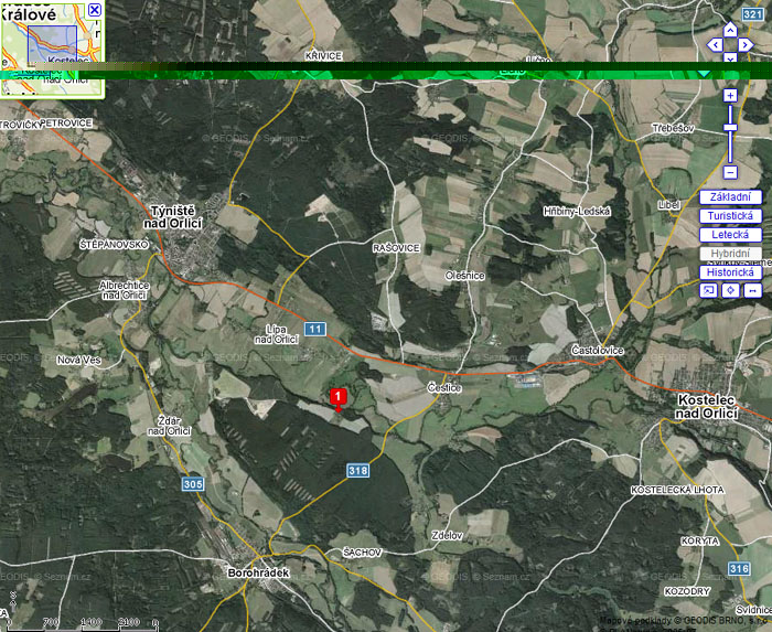 | 16,2 | Krňovice vl vl, Třebechovice pod Orebem 1,2 km vp / 1,3 km vp |