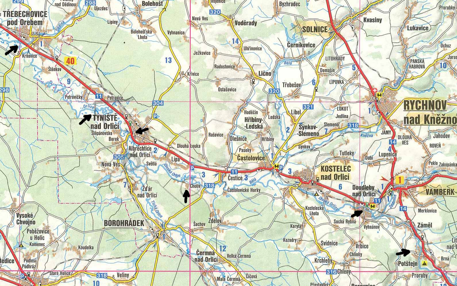 | 12,5 | u. Bělá vp, Častolovice 1 km vp |